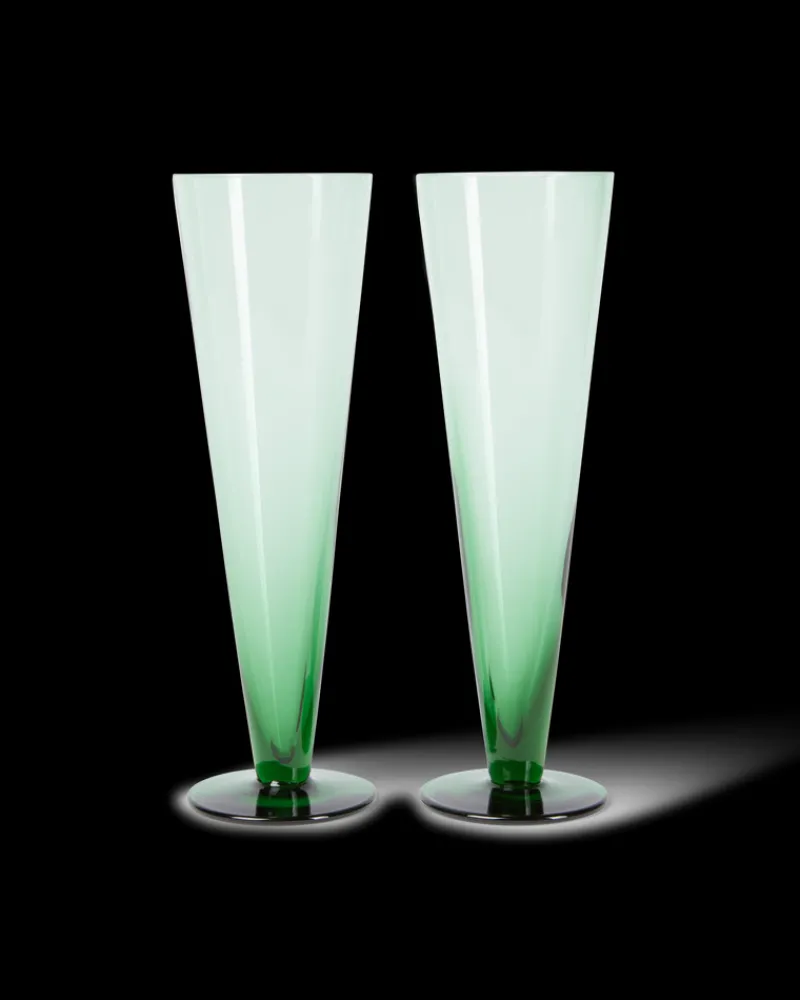 Flutes | Emporio Sirenuse Coloured Champagne Flute Set of 2 Green